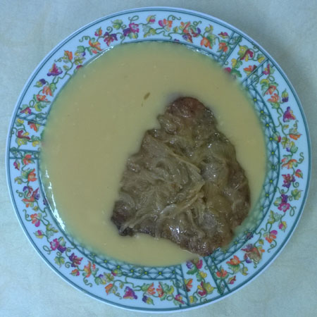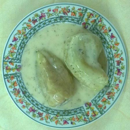 Velővel töltött palacsinta rántva, petrezselymes burgonyával