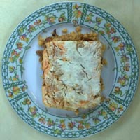 Füstölt sajttal, almával töltött szelet rántva Mazsolás rizs