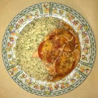 Sertésszelet Gellért módra, Petrezselymes rizs