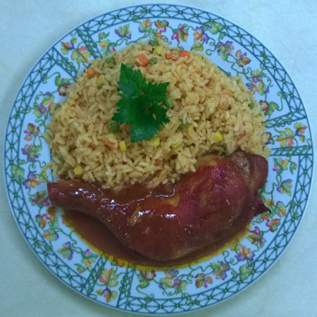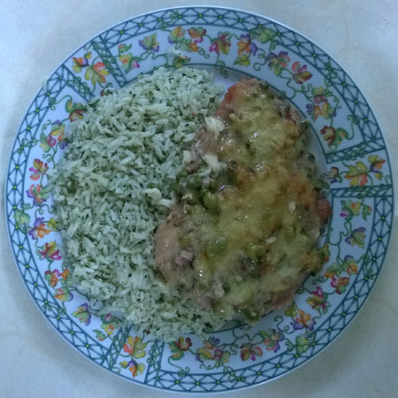 Sertésszelet Gellért módra, Petrezselymes rizs